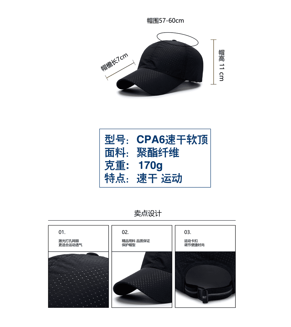 CPA6 速干网眼 软顶棒球帽快乾帽