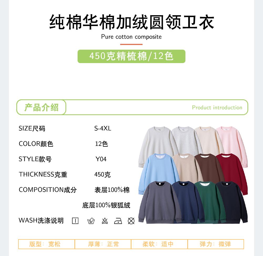JTHX-Y04-纯棉华棉加绒圆领卫衣
