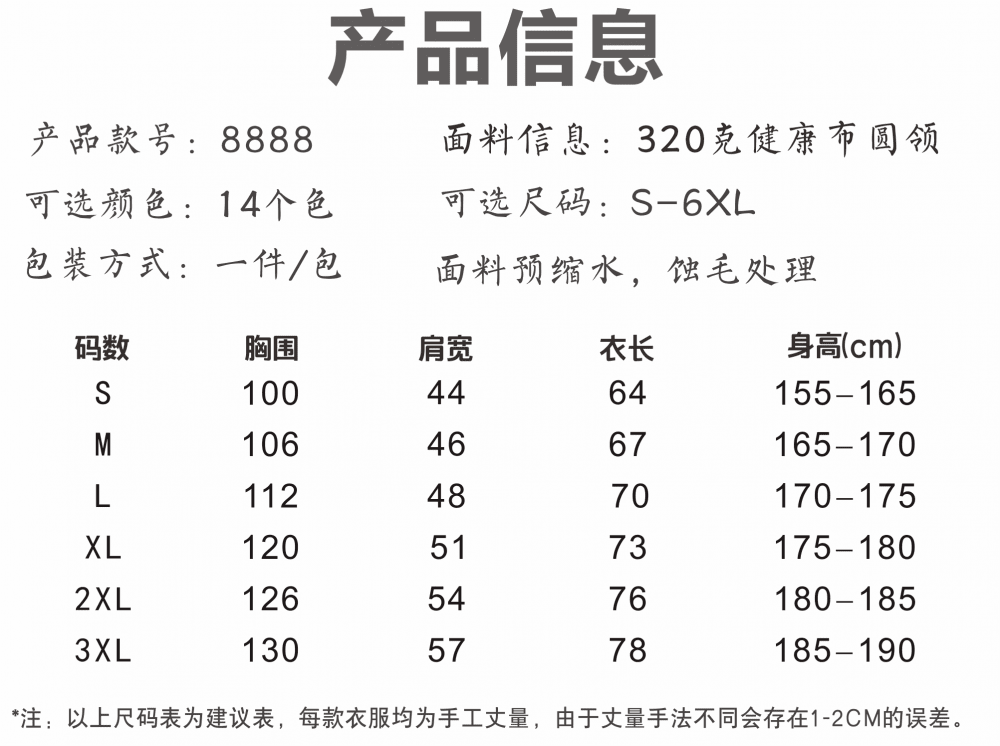 6XL, 5XL, 4XL, 3XL, 2XL, XL, L, M, S