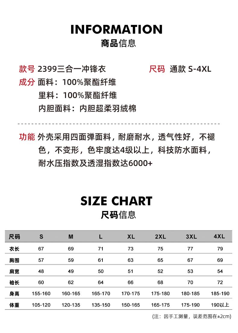 JTW-2399三合一冲锋衣 數量