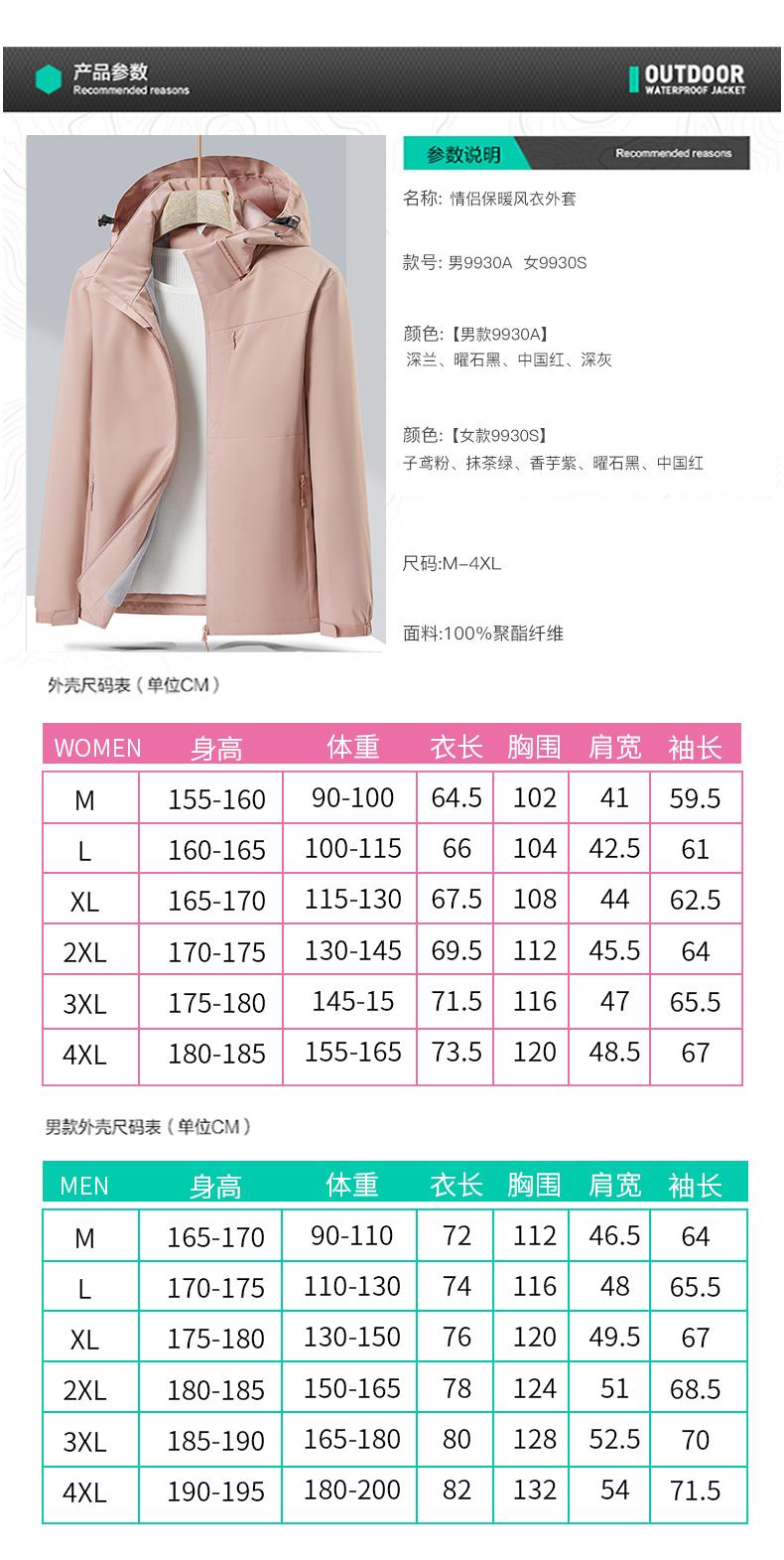 JTMC-9930款 情侣分男女一体加绒冲锋衣,高档零售品质,带服装温度计