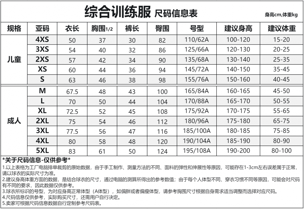 尺碼XXS-6XL