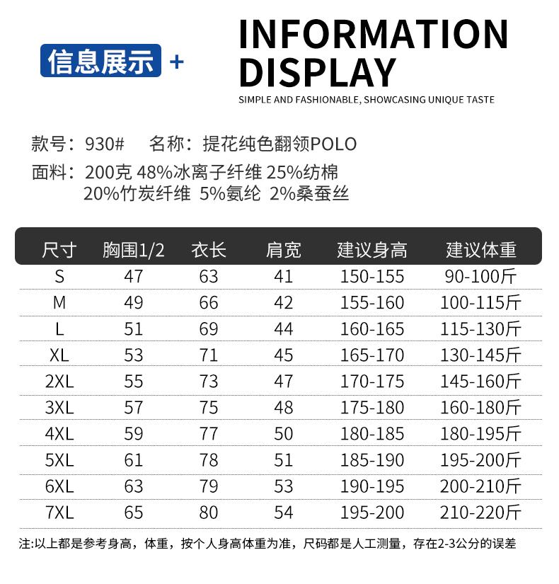 品类:Polo 版型:短袖翻领 材质:48%冰离子纤维 25%纺棉 20%竹炭纤维5%氨纶2%桑蚕丝 款式:男女同款